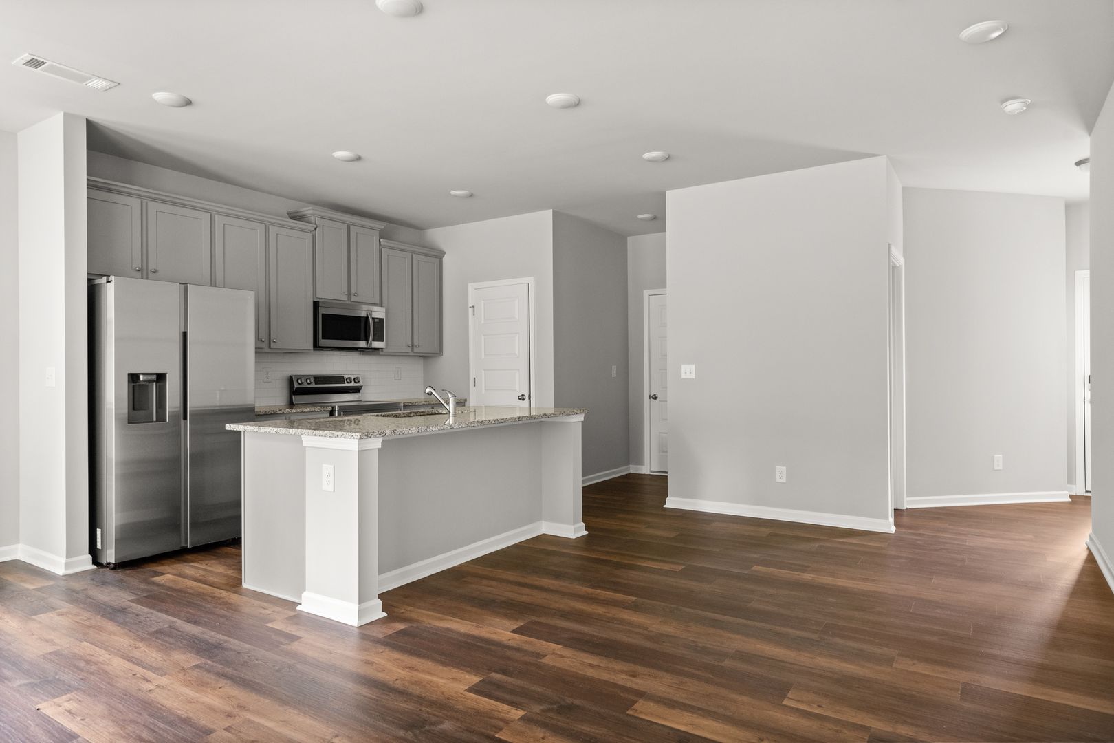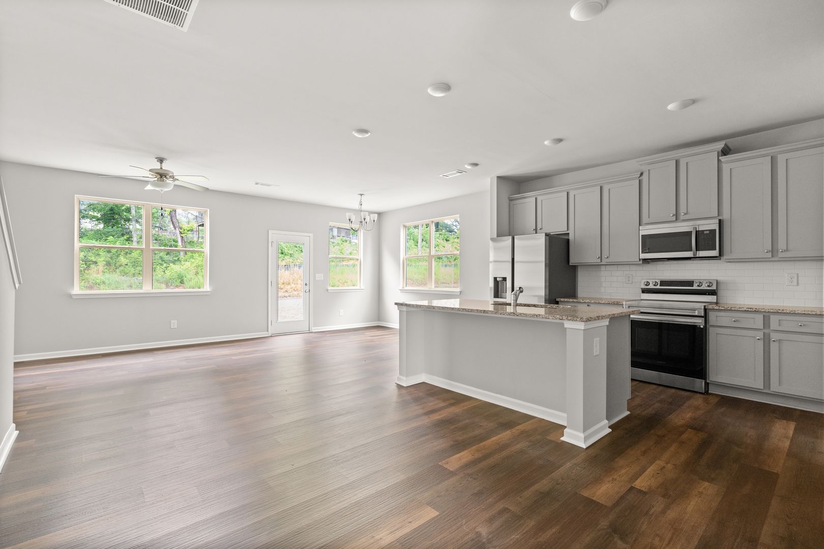 This sweet home in Gainesville, Georgia located at Retreat at Chicopee. An open floor plan downstairs, chef's kitchen island along with stainless steel appliances compliments this residence nicely. Living room presents an engineered hardwood flooring throughout the main level.