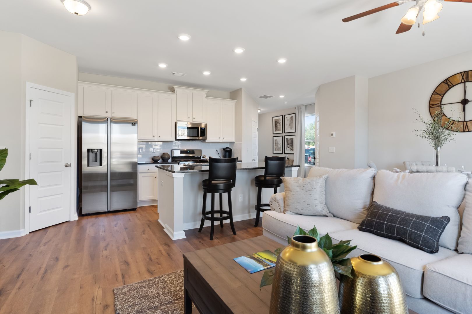 Imagine living in a brand new home that no one else has. We have the Townhome for you in Oakwood! This beautiful townhome features 42" cabinets, granite countertops, stainless steel appliances, oversized walk-in closets, ceiling fans, 9' ceilings on first floor, 8' ceilings on second floor, laminate hardwoods on first floor, iron spindles and oak handrails, garages, front stone or brick siding, covered front porch, and so much more.