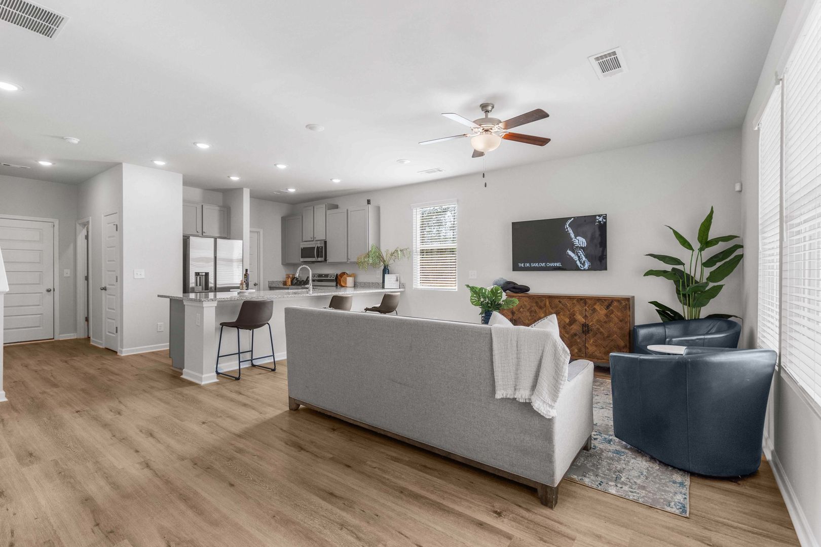 At The Collection Clark Farms, revel in all the features of a new home with all the benefits of home ownership without the hassle. Each home is finished with wood-inspired flooring, granite countertops, and stainless-steel appliances.