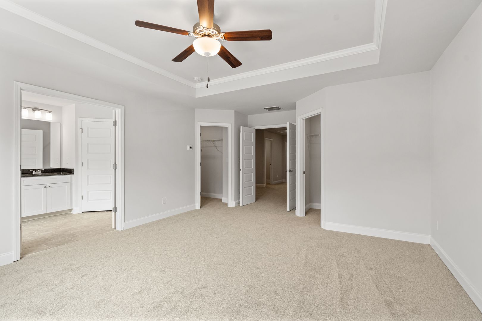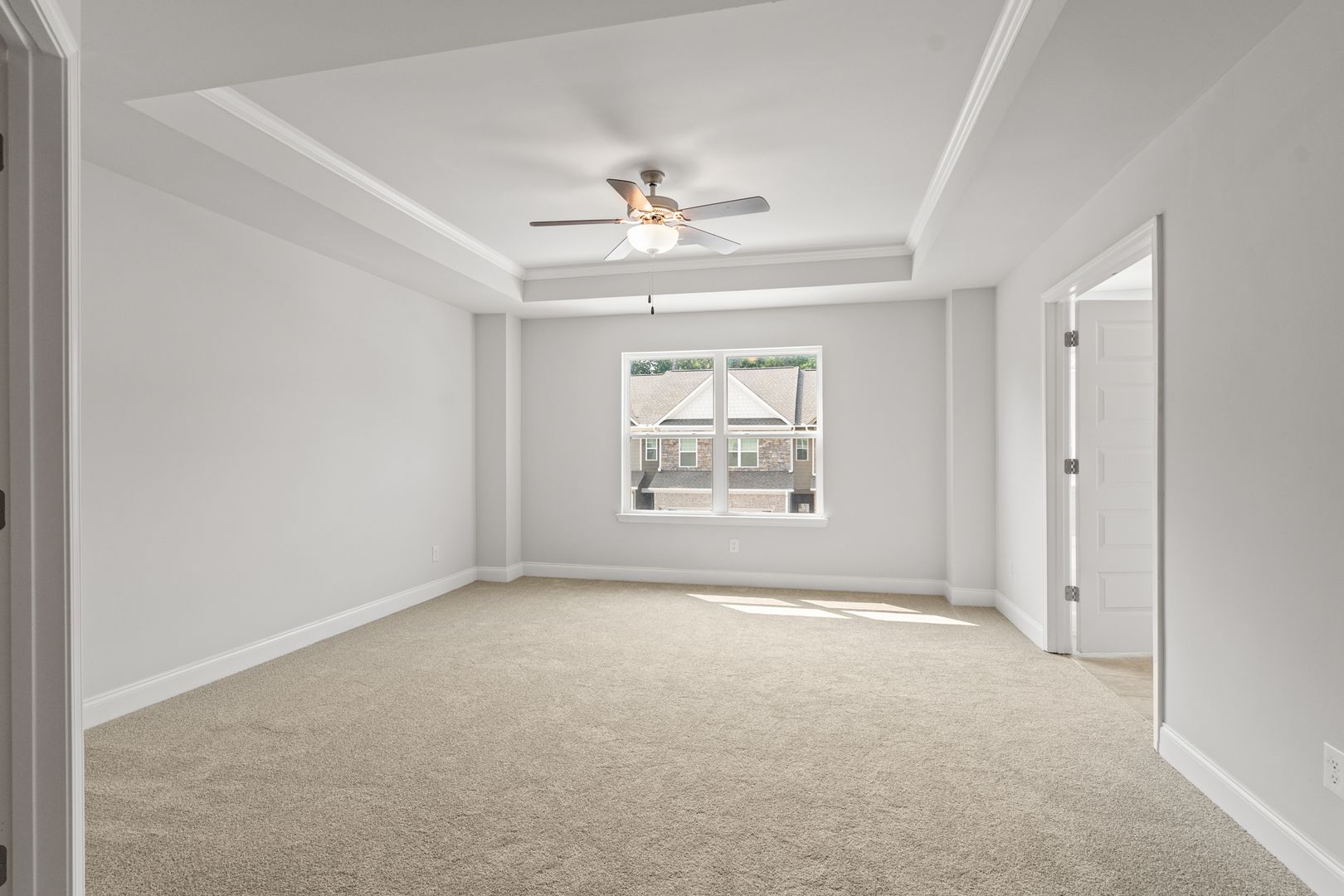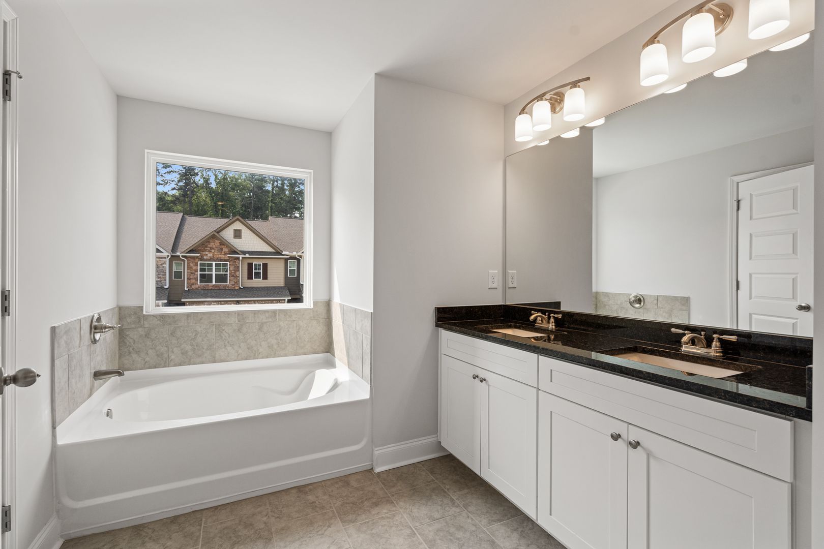 Upstairs offers a versatile loft space and a stunning primary suite with crown molding, a tray ceiling, tiled bath floors, and a relaxing garden soaking tub. Enjoy peaceful natural views from the back of the home and stylish finishes throughout.